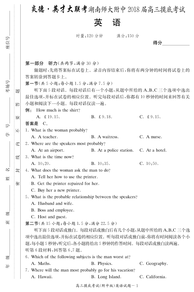 | 資源類別: | 名校月考 | |