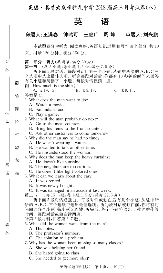 下一篇:【語文】炎德英才大聯(lián)考2018雅禮中學高三8次月考