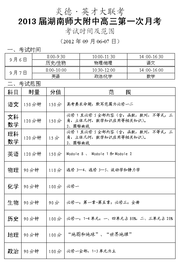 下一篇:炎德英才大聯考湖南師大附中2013屆高三月考試卷考試時間和范圍(第2-10次)