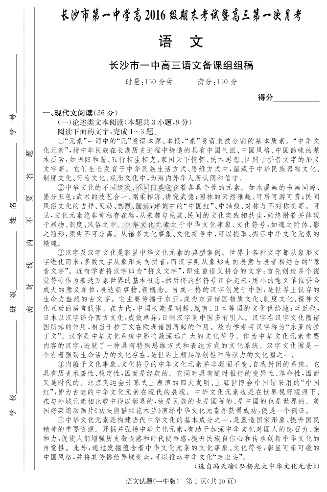 2026湖南師大附中新高考考前小題訓練·語文