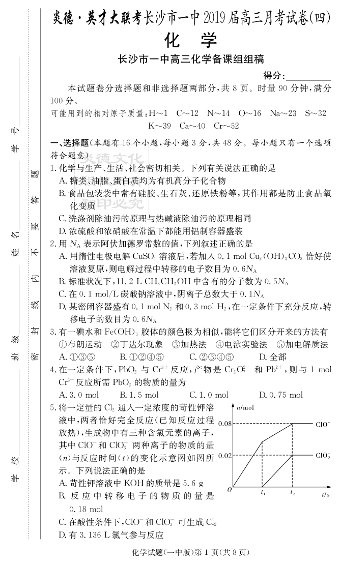 2026長郡中學新高考考前小題沖刺訓練·化學