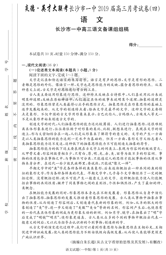 2026長郡中學新高考考前小題沖刺訓練·語文