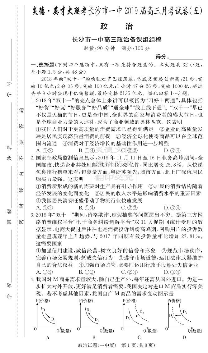 2026長郡中學新高考考前小題沖刺訓練·政治
