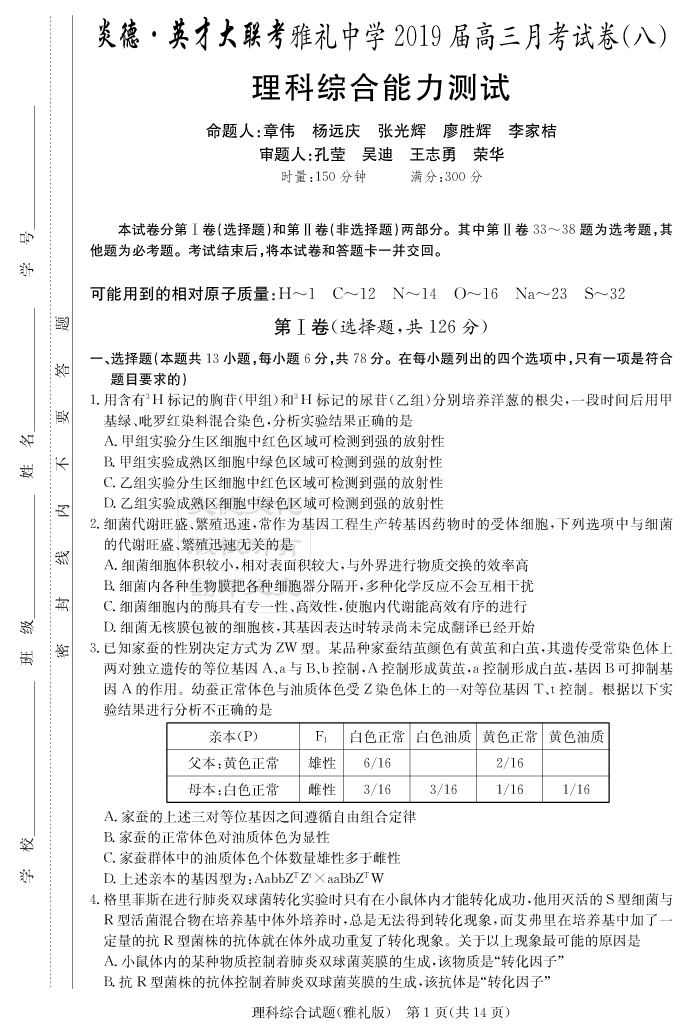 上一篇:【理數】炎德英才大聯考2019雅禮中學高三8次月考