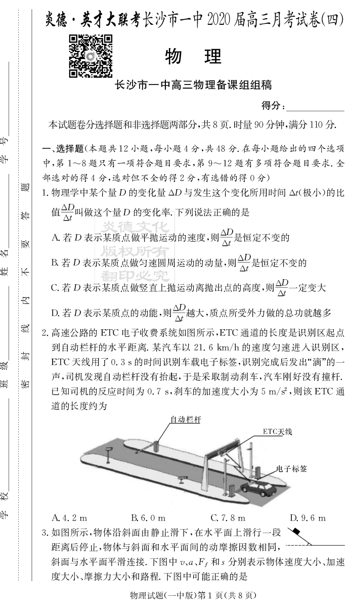 2026年長郡中學備考寶典(高考考前寶典)·物理傾向