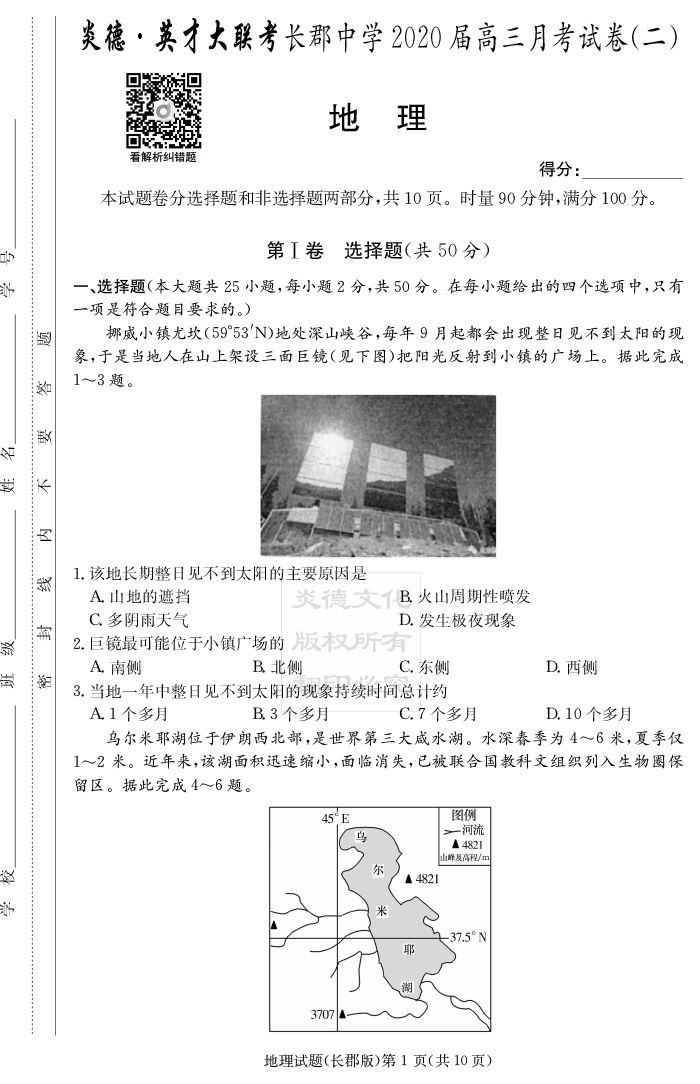 2026湖南師大附中新高考考前小題訓練·地理