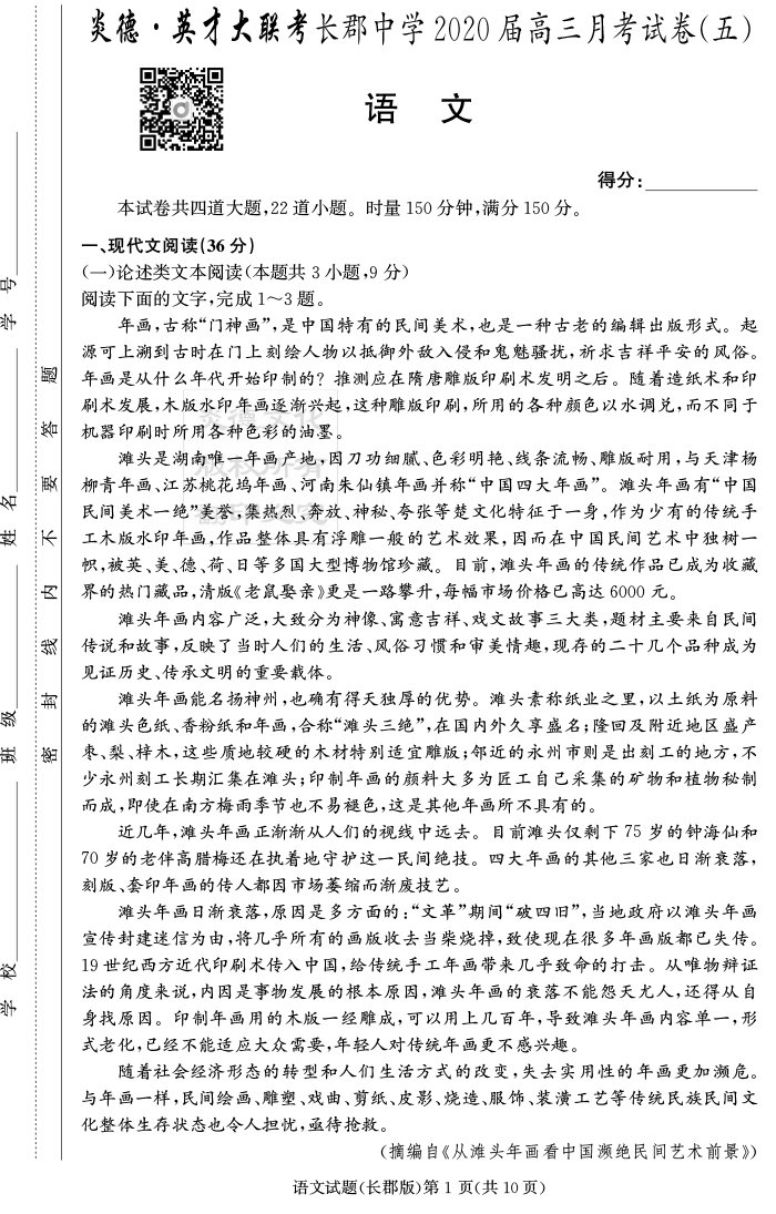 2026長郡中學新高考考前小題沖刺訓練·語文