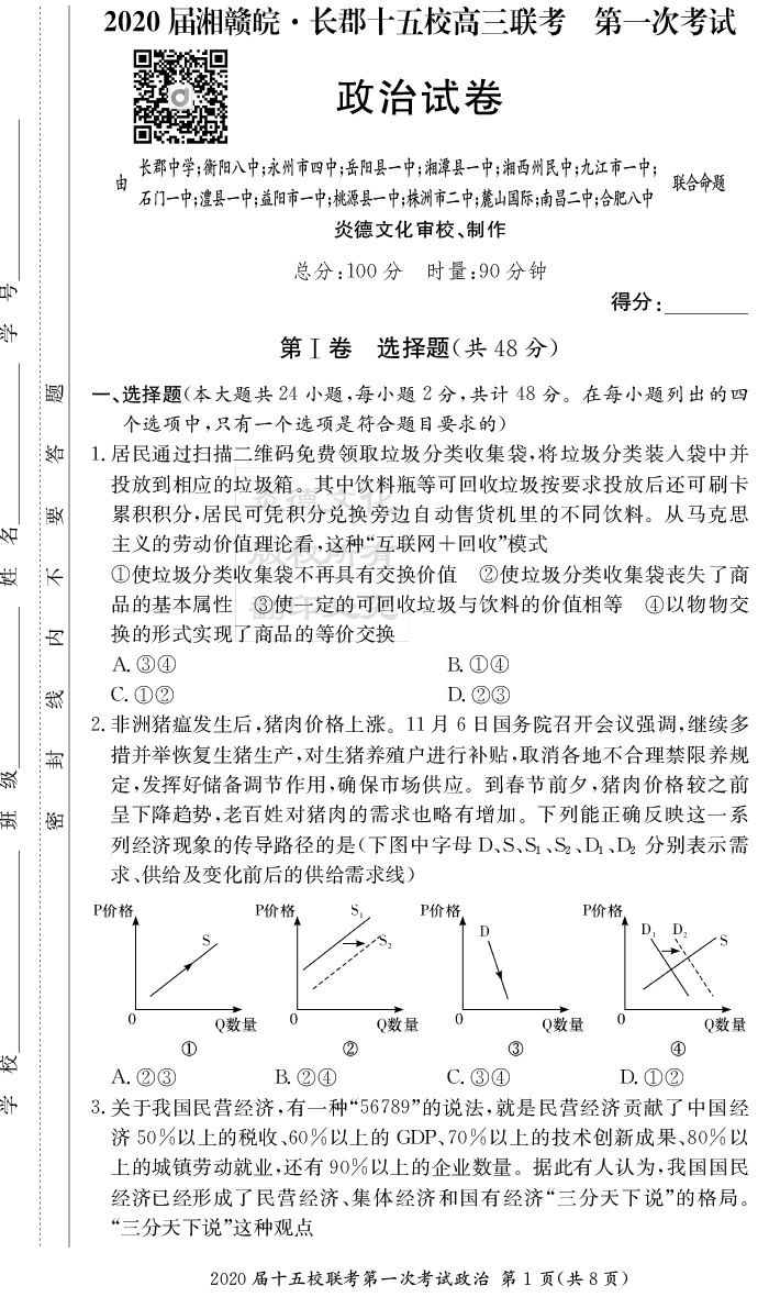 2026長郡中學新高考考前小題沖刺訓練·政治