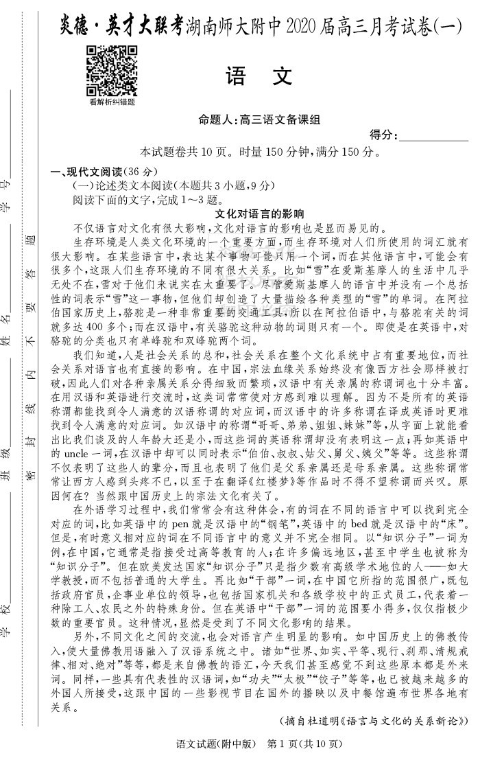 下一篇:【政治】炎德英才大聯(lián)考2020屆師大附中高三1次月考