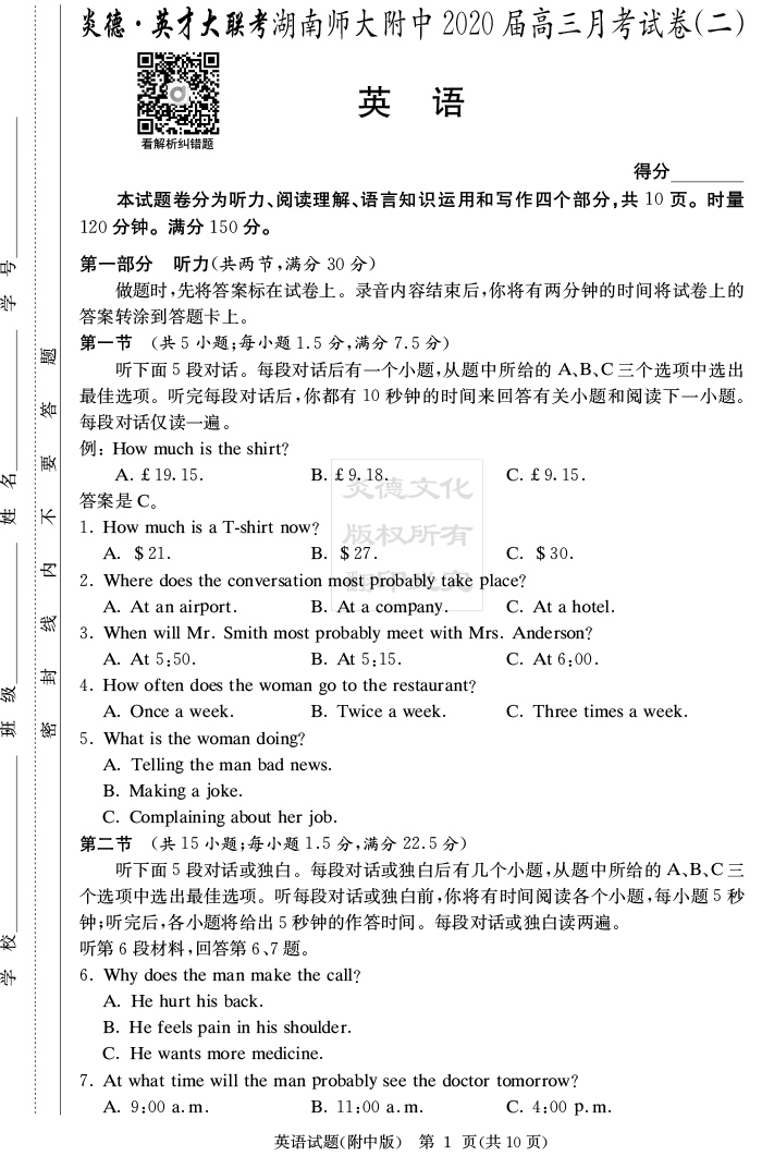 下一篇:【語文】炎德英才大聯考2020屆師大附中高三2次月考