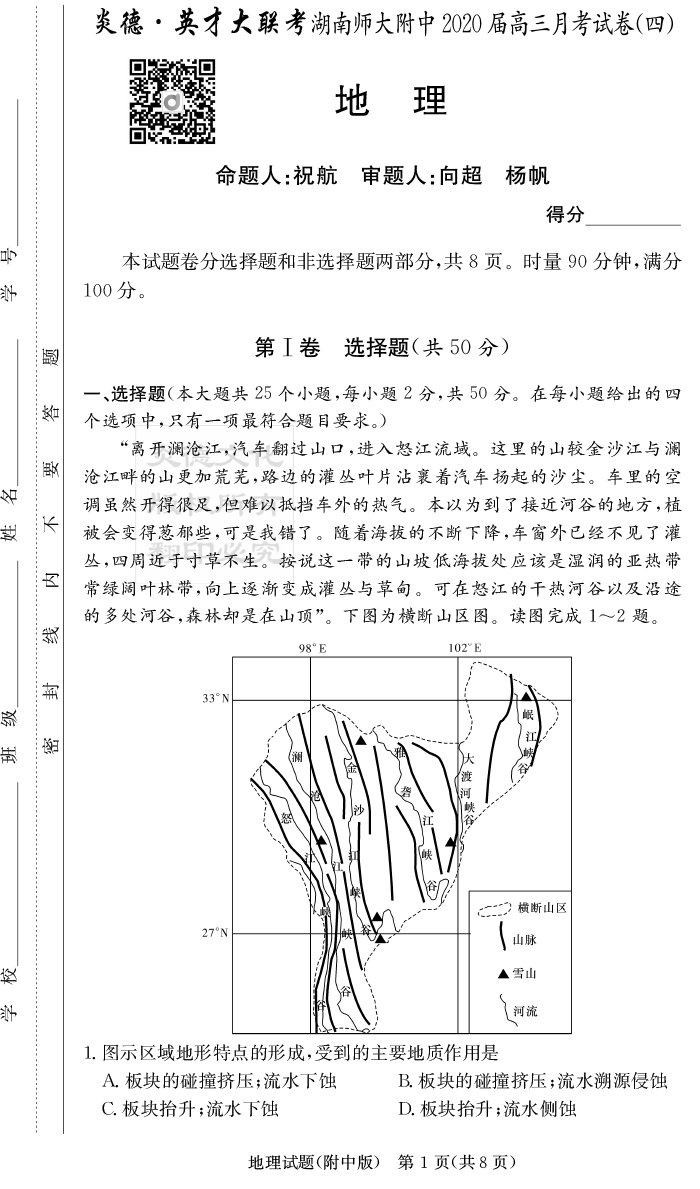 上一篇:【政治】炎德英才大聯考2020屆師大附中高三3次月考