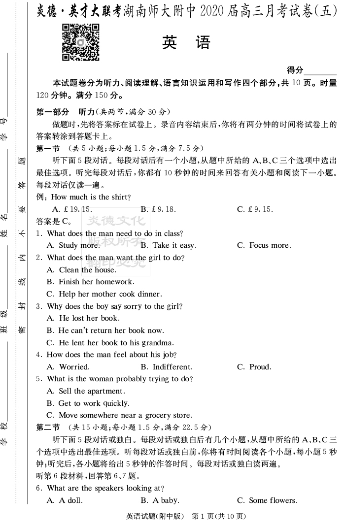 下一篇:【語文】炎德英才大聯考2020屆師大附中高三5次月考