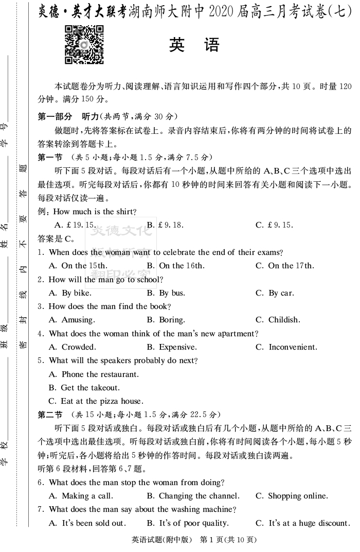 | 資源類別: | 名校月考 | |