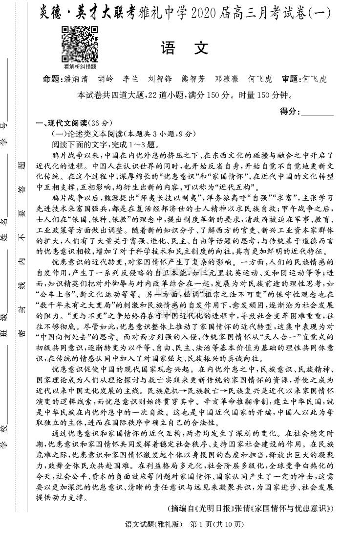 下一篇:【政治】炎德英才大聯考2020屆雅禮中學高三1次月考