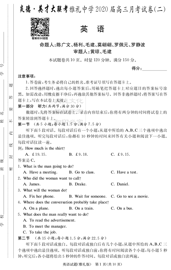 下一篇:【語文】炎德英才大聯考2020屆雅禮中學高三2次月考