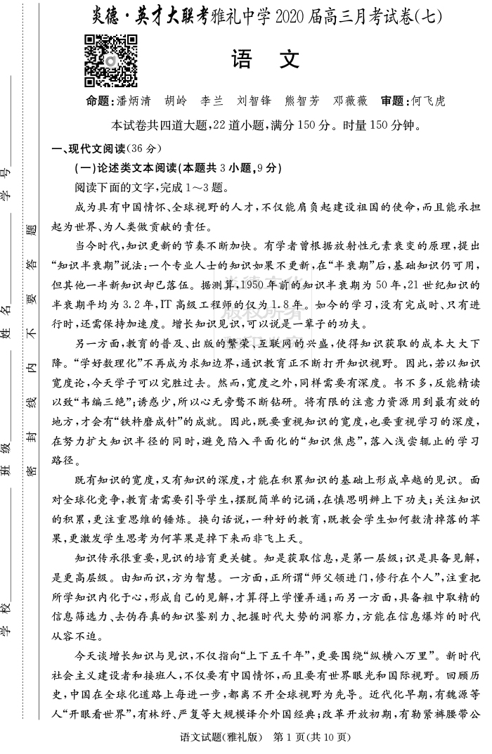 2026湖南師大附中新高考考前小題訓練·語文