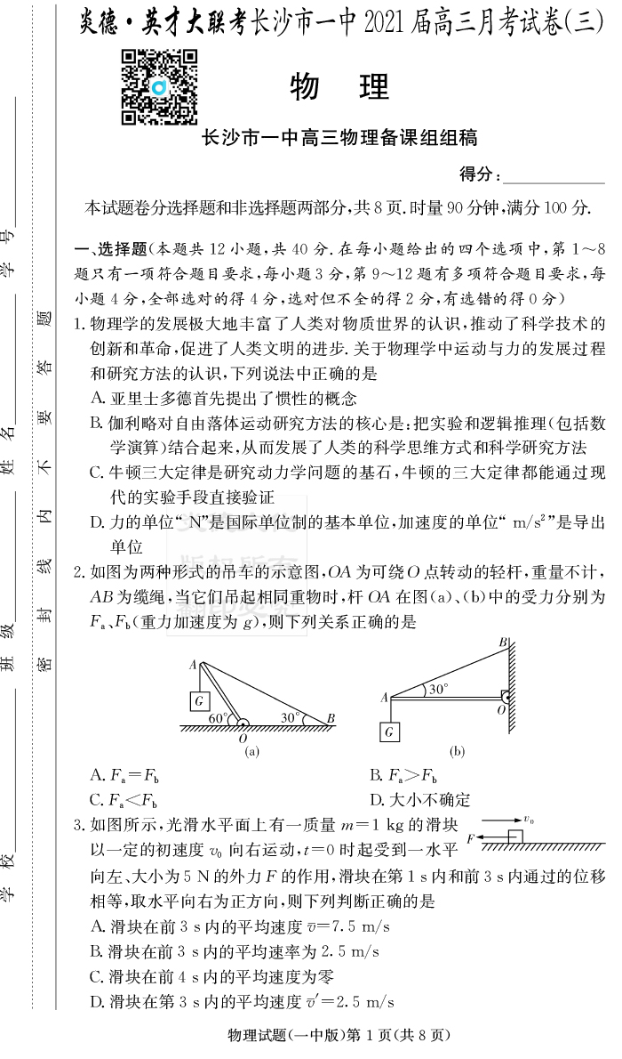 2026年高中寒假作業自主學習作業本·高一年級·物理