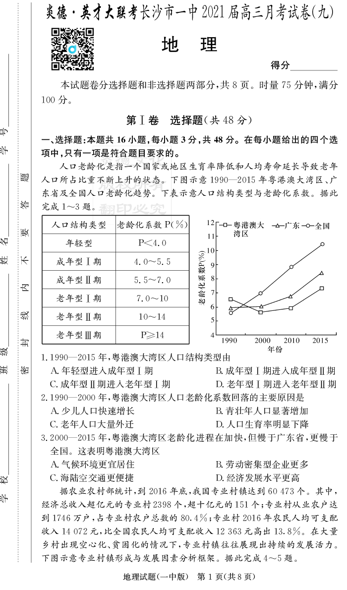 【地理】炎德英才大聯考2021屆長沙市一中高三9次月考
