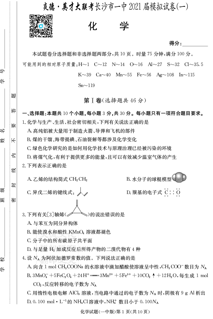 上一篇:【地理】炎德英才大聯考2021屆長沙市一中高三10次月考(模擬一)
