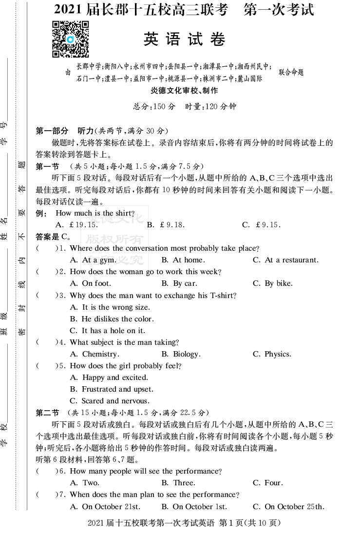 | 資源類別: | 名校月考 | |