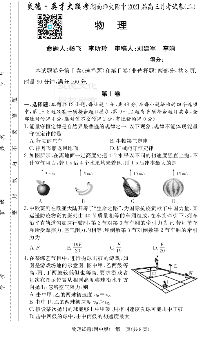 下一篇:【英語】炎德英才大聯考2021屆湖南師大附中高三2次月考