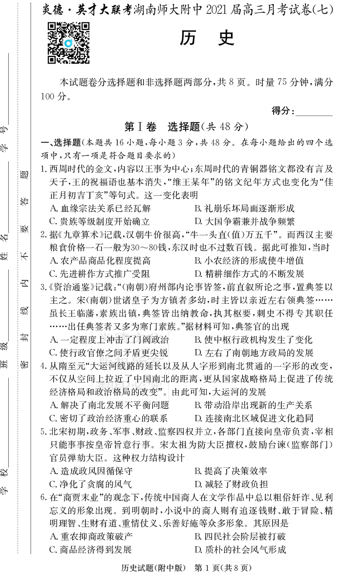 2025名師導學·名校名卷經(jīng)典試題匯編·歷史