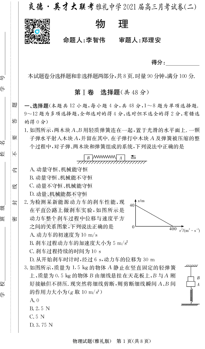 下一篇:【英語】炎德英才大聯考2021屆雅禮中學高三2次月考