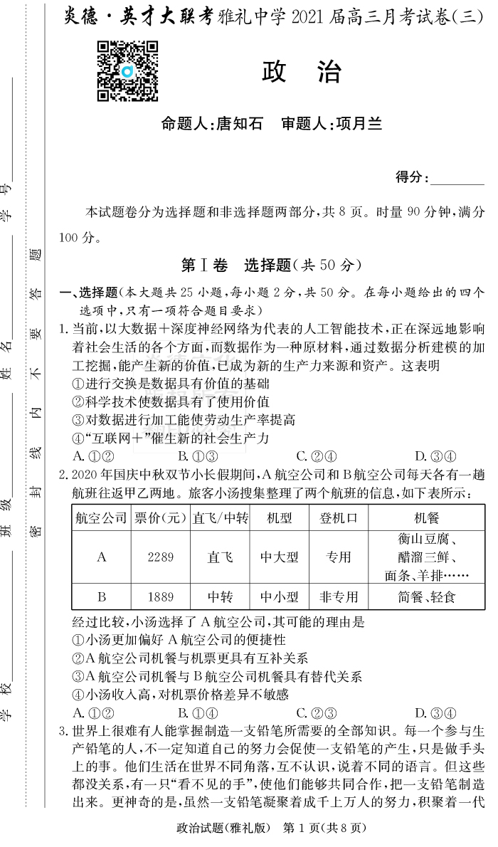 上一篇:【語文】炎德英才大聯考2021屆雅禮中學高三3次月考