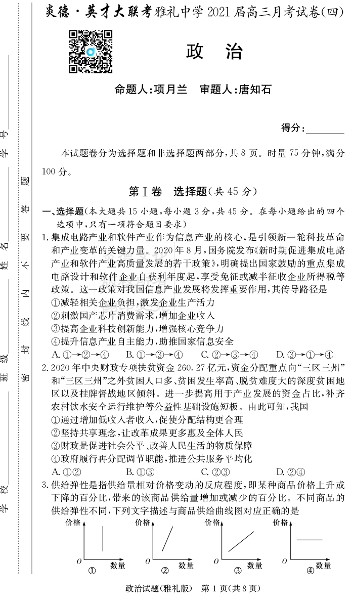 2026長郡中學新高考考前小題沖刺訓練·政治