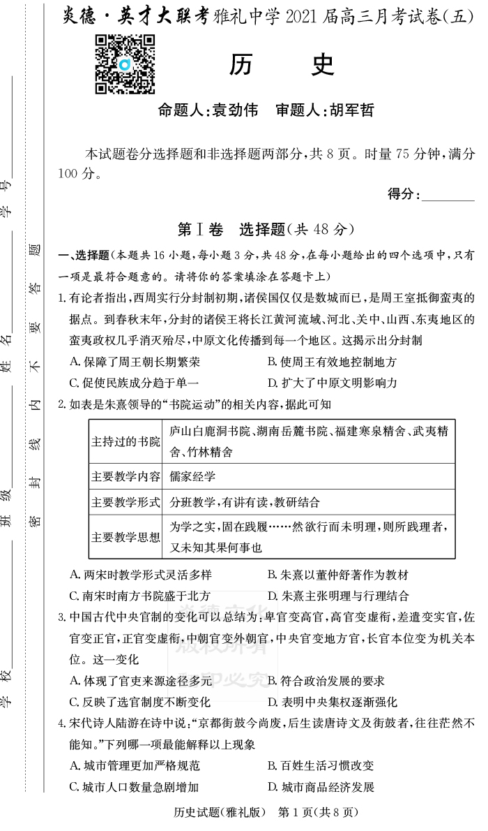 2026年長郡中學備考寶典(高考考前寶典)·歷史傾向