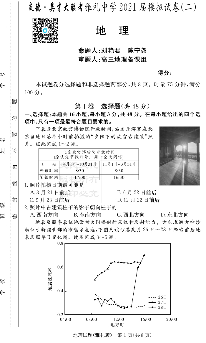 2026年高中寒假作業自主學習作業本·高三年級·地理