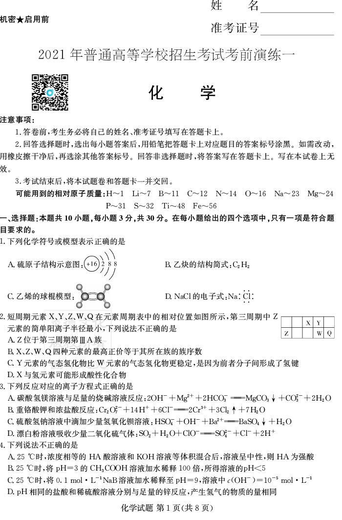 下一篇:【歷史】2021年普通高等學校招生全國統一考試考前演練(一)