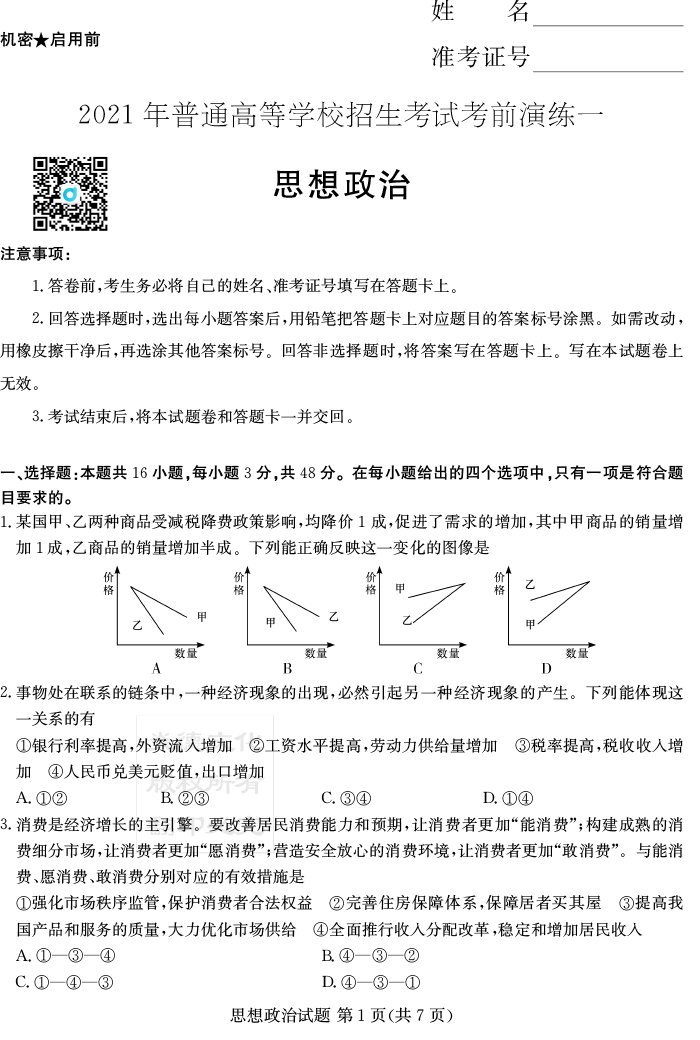 下一篇:【地理】2021年普通高等學校招生全國統一考試考前演練(二)