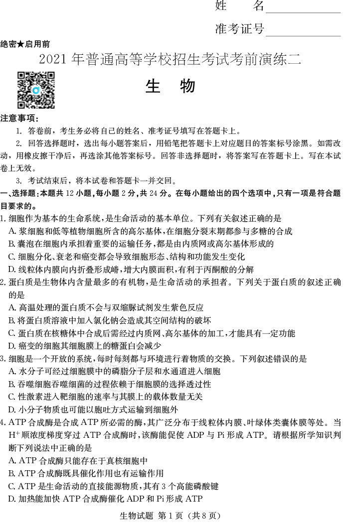 上一篇:【歷史】2021年普通高等學校招生全國統一考試考前演練(二)