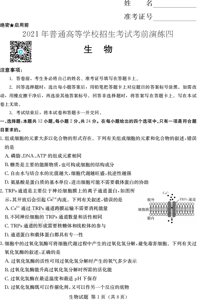 下一篇:【數學】2021年普通高等學校招生全國統一考試考前演練(四)
