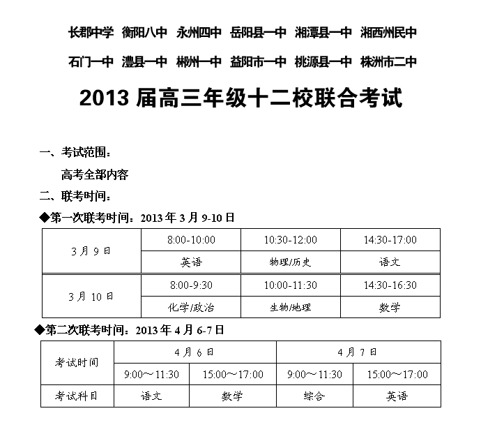 上一篇:《炎德英才大聯考》2013年3-5月份高三月考試卷安排計劃表