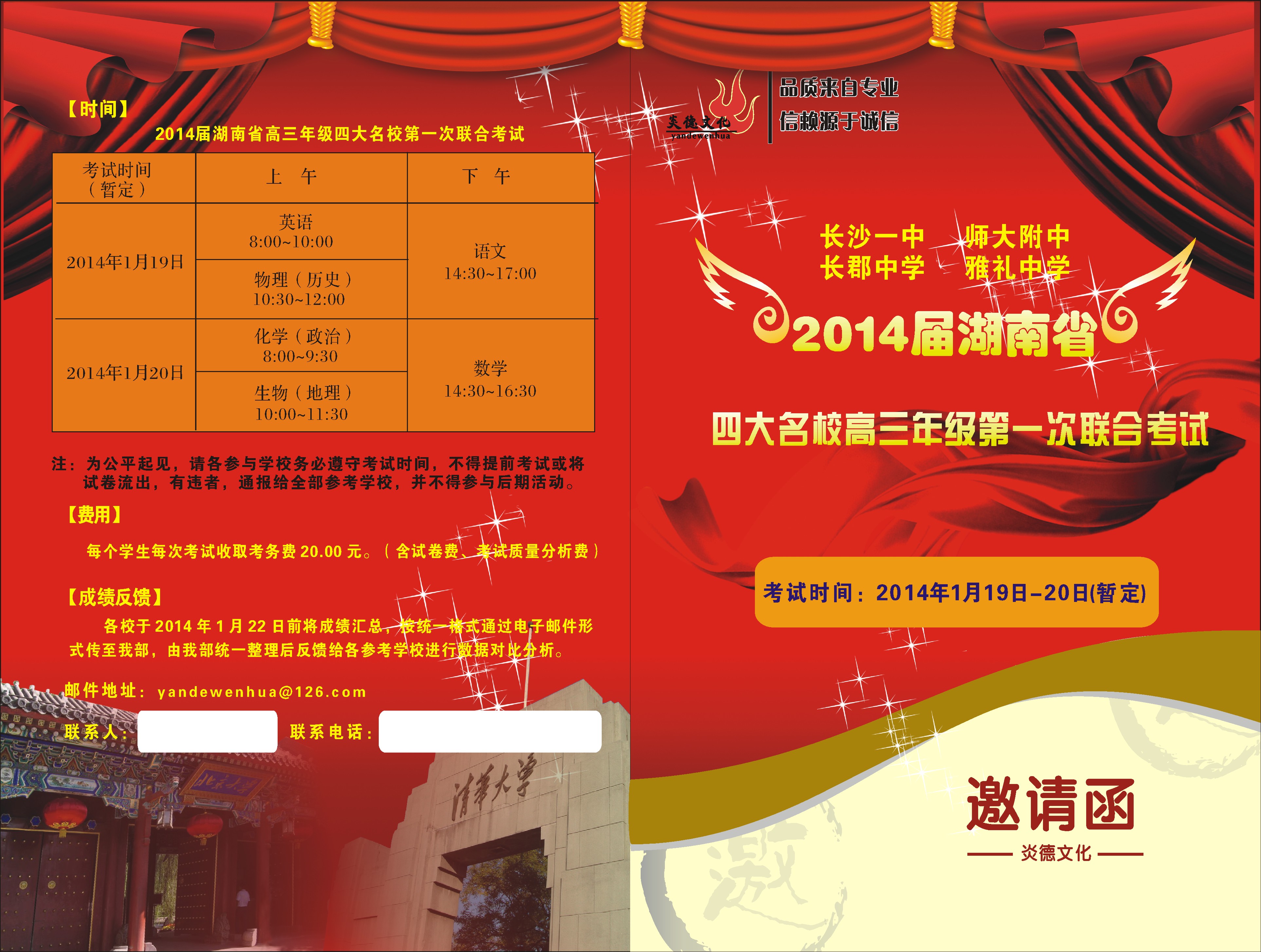 下一篇:炎德英才大聯(lián)考2014屆湖南省高三四校聯(lián)考考試時間安排及范圍(2014.01.19-20)