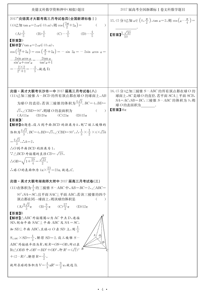 2017高考全國(guó)新課標(biāo)卷Ⅰ對(duì)分表-文數(shù)