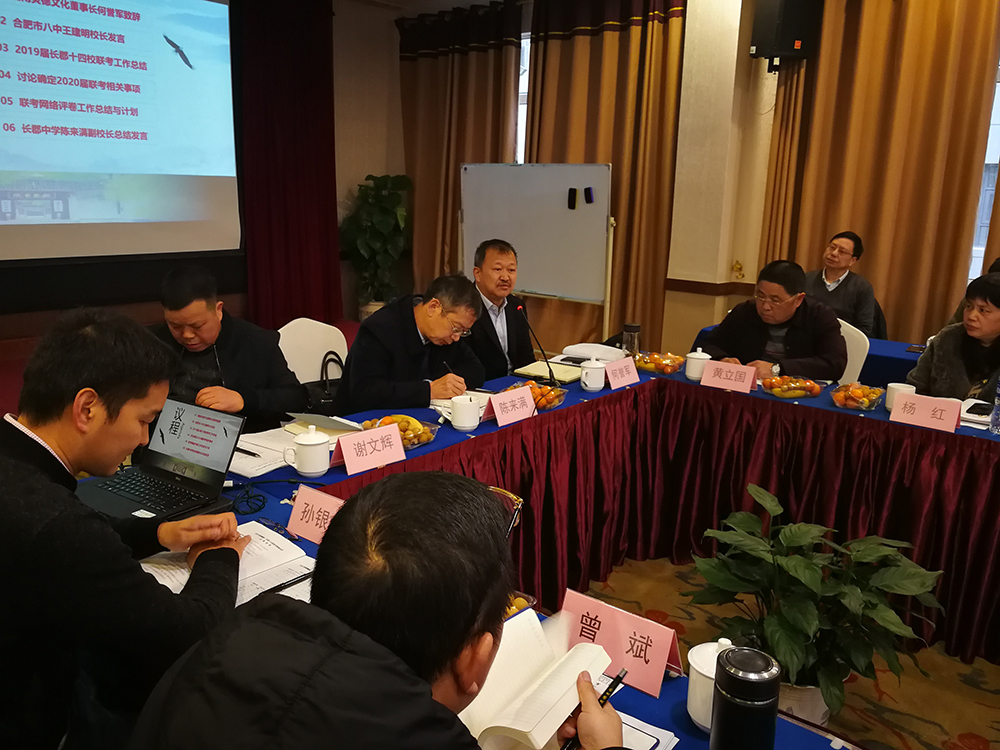 在接下來的會議中,由炎德文化謝文輝和孫銀華分別簡要總結了2019屆聯考的命題和閱卷情況,并討論確定了2020屆湘贛皖·長郡十五校聯考各項工作安排。