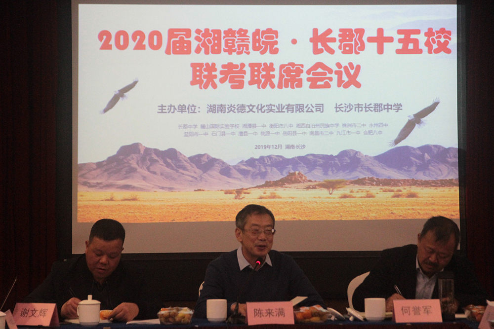 2019年12月15日上午,2020屆湘贛皖·長郡十五校聯考聯席會議在長沙成功舉行。本次會議由湖南炎德文化實業有限公司主辦,來自湖南省內的長郡中學、麓山國際實驗學校、岳陽縣一中、桃源縣一中、石門縣一中、澧縣一中、衡陽市八中、永州市四中、湘潭縣一中、湘西州民中、株洲市二中、益陽市一中,以及江西省南昌市二中、九江市一中和安徽省合肥市八中共十五所聯盟學校,共四十余位校領導、教務主任或年級主任參加了本次會議。