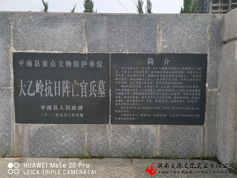 1944年9月29日,日軍占領平南縣。當日,國民革命軍64師63團三個連夜襲駐扎在大乙?guī)X的日軍。斃敵十余而陣亡百多人多人。此后月余,縣鄉(xiāng)抗日自衛(wèi)隊在牛路嶺、良竹村、月三橋、平塘及社垌等地連續(xù)襲擊日軍,奕戰(zhàn)死十余人。次年中秋,下渡人李渭清集資,由劉福祥收拾陣亡軍民遺骨合葬于大乙?guī)X之南,墓前立碑記事,左右刻有對聯(lián):“精忠磅礴中秋月 熱血斑斕大乙山",此墓前當?shù)孛癖姺Q為”百骨墳”。