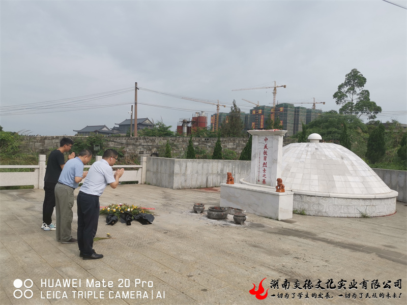 2021年5月5日,在廣西貴港出差的抗日戰(zhàn)爭紀念網(wǎng)總編、抗日戰(zhàn)爭圖書館館長、長沙抗戰(zhàn)文化研究會會長、湖南炎德文化實業(yè)有限公司董事長何譽軍、湖南炎德文化實業(yè)有限公司黨支部書記熊祖平、黨員何琳斌、譚志強等,到平南大乙?guī)X抗日烈士紀念園祭拜抗日英烈。