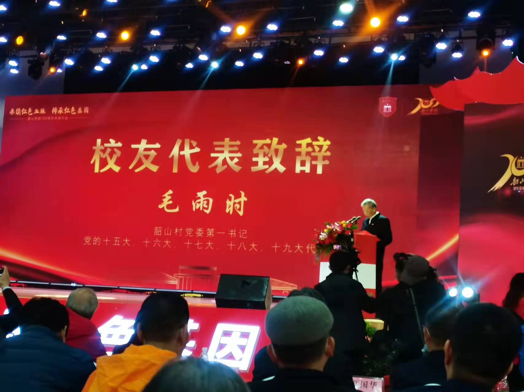 校友代表、韶山村黨委第一書記、全國人大代表毛雨時致辭。