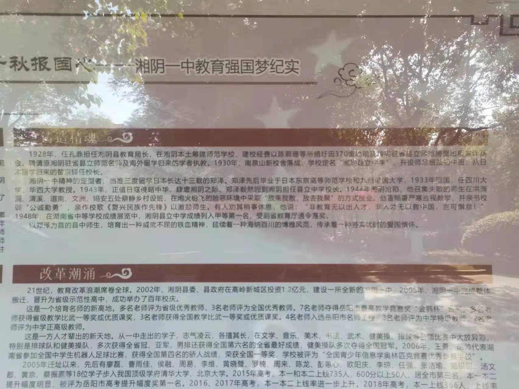 湘陰縣第一中學(xué)前身為創(chuàng)辦于1905年(清光緒32年)的“湘陰駐省中學(xué)”,1958年,定名為“湖南省湘陰縣第一中學(xué)”。