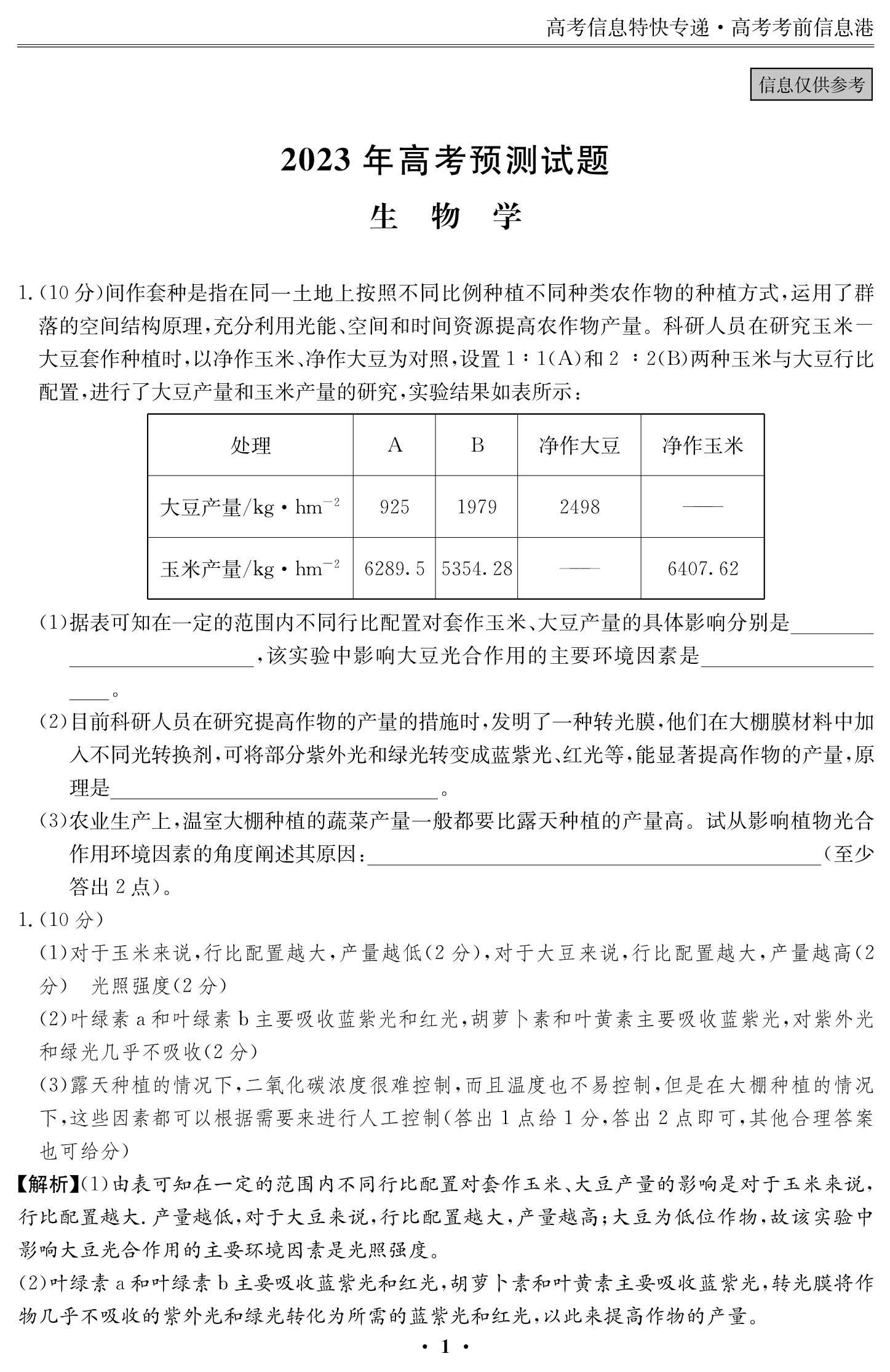 2023年高考考前預(yù)測信息補(bǔ)充內(nèi)容(一)5月30日