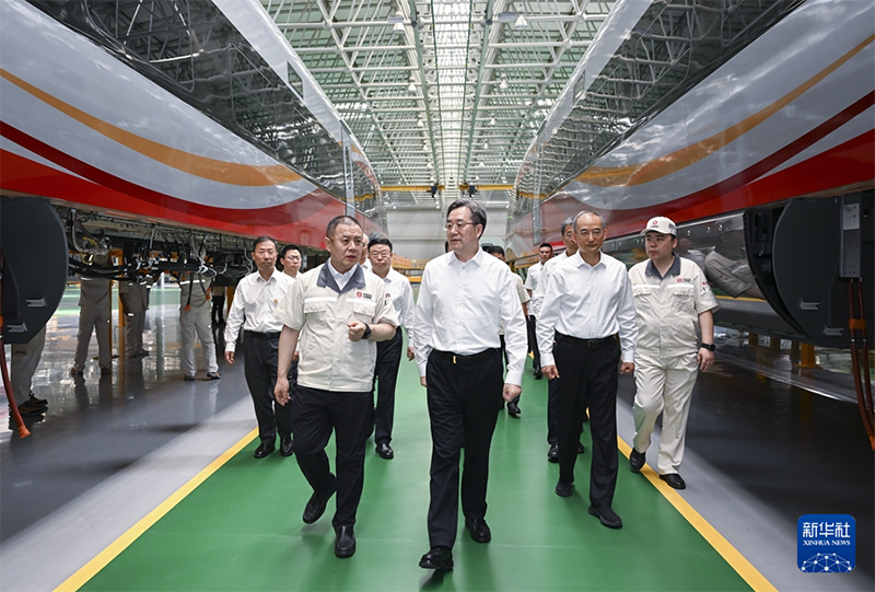 7月7日至9日,中共中央政治局常委、國務(wù)院副總理丁薛祥在黑龍江、吉林調(diào)研。這是7月8日,丁薛祥在中車長(zhǎng)春軌道客車股份有限公司調(diào)研。(新華社記者 張領(lǐng)/攝)