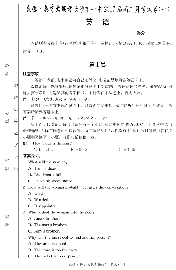 上一篇:【物理】炎德英才大聯考2017長沙一中高三1次月考