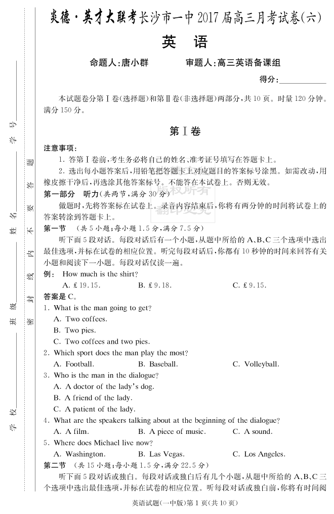 上一篇:【物理】炎德英才大聯考2017長沙一中高三6次月考